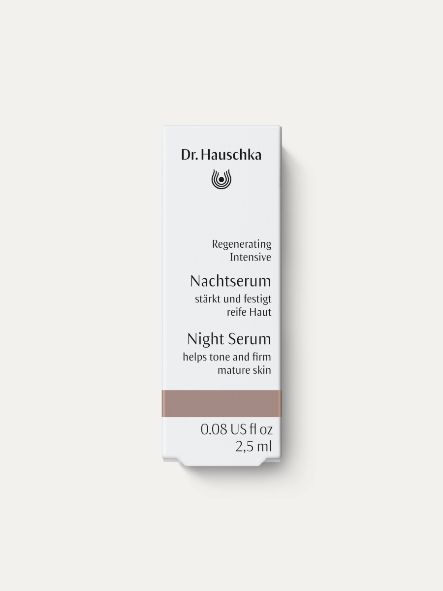 Вечером, после очищения и тонизирования, мы рекомендуем нанести 1-2 капли Регенерирующей сыворотки для интенсивного ночного ухода за лицом Dr. Hauschka на кожу лица, шеи и зону декольте.